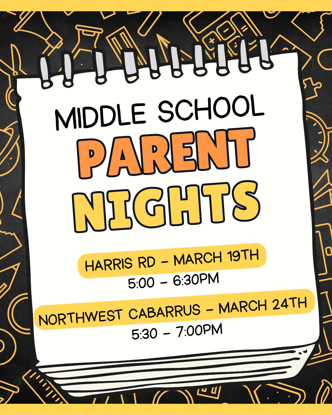 Save the Date(s)!We want to make sure you have all the information you need for the upcoming school year. Please save the date for Middle School Parent Night at your student’s school: Harris Rd Mid...